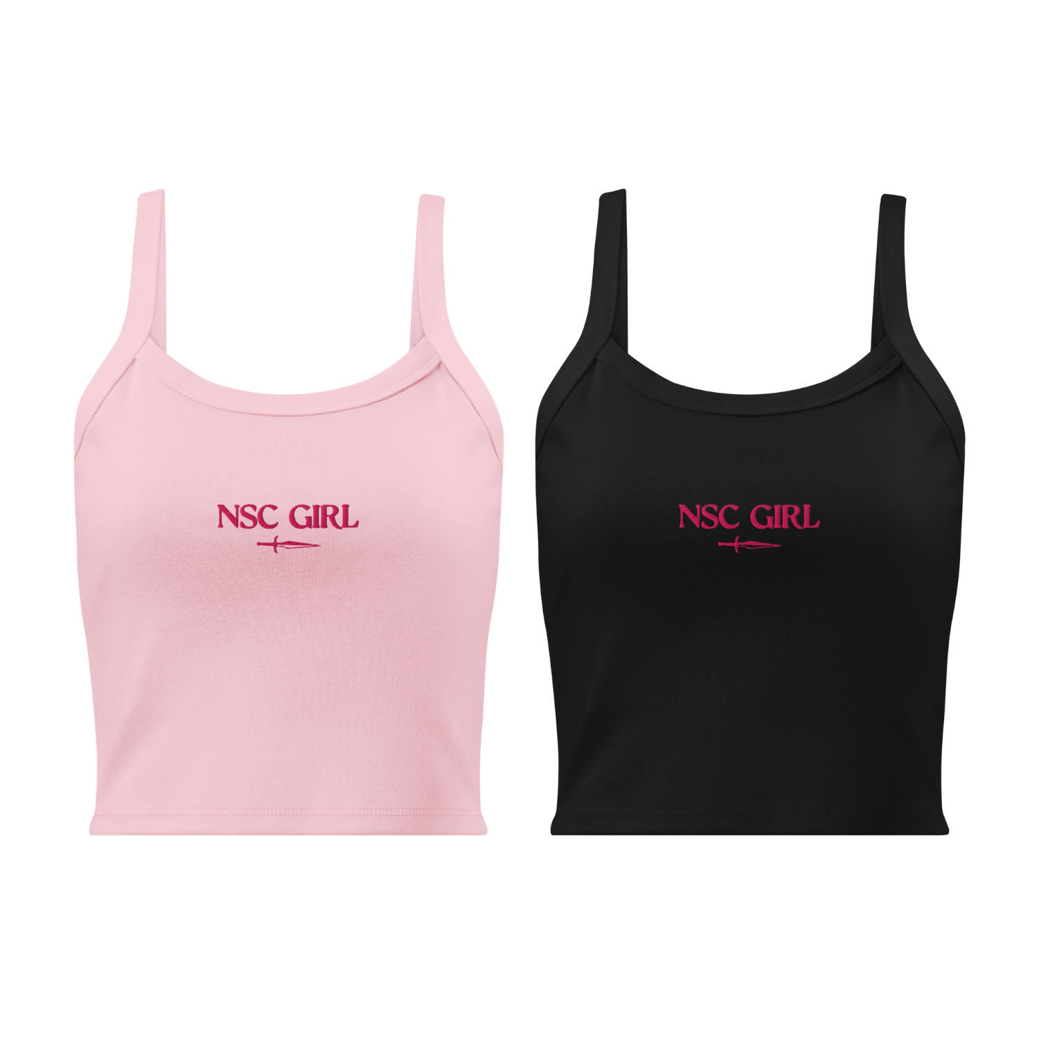 The phrase “NSC girl” is embroidered in pink script – subtle and romantic.