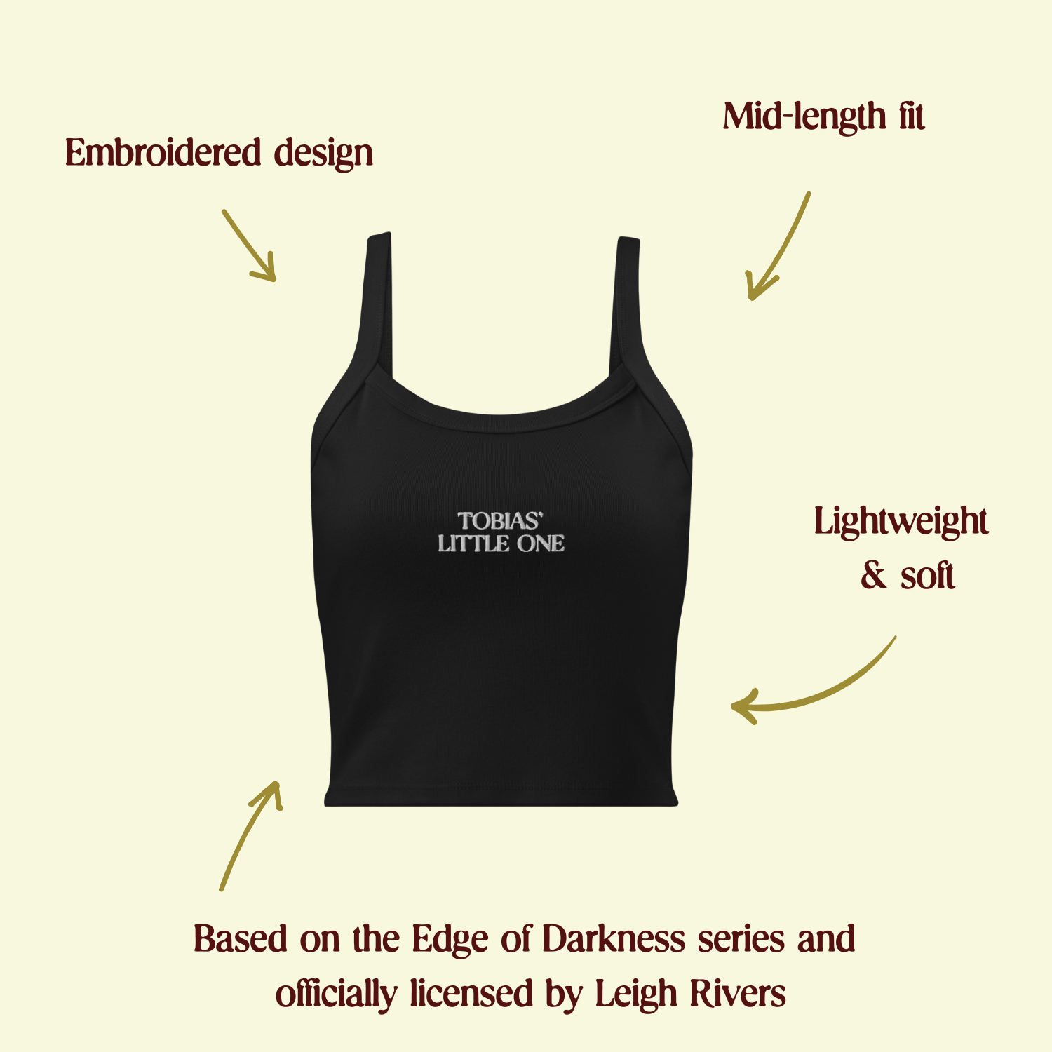 Little one” is one of those nicknames that carries more weight than it seems. Inspired by Edge of Darkness, this embroidered tank is made for readers who loved watching Tobias Mitchell and Stacey’s relationship evolve into something protective, intense and unexpectedly tender.